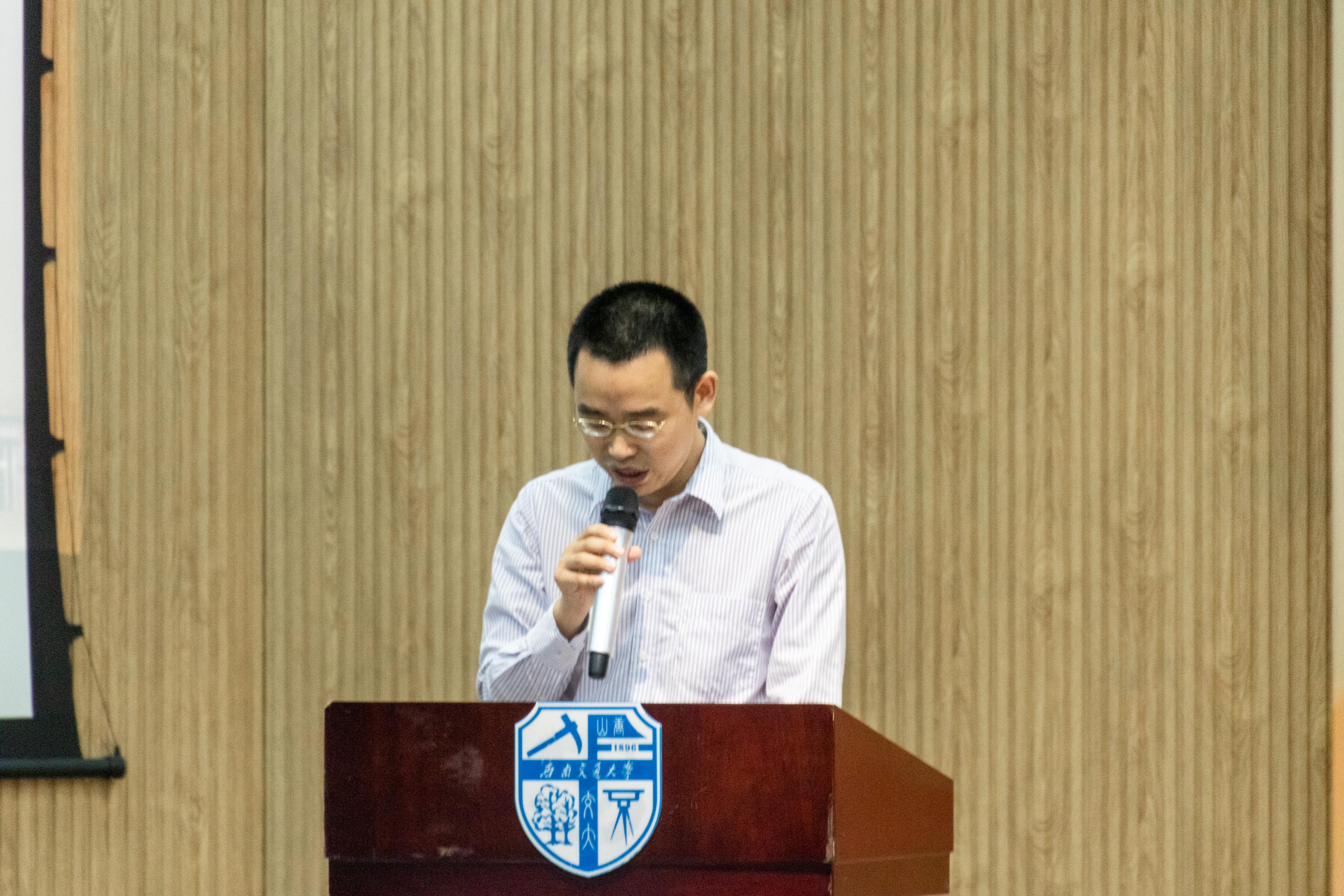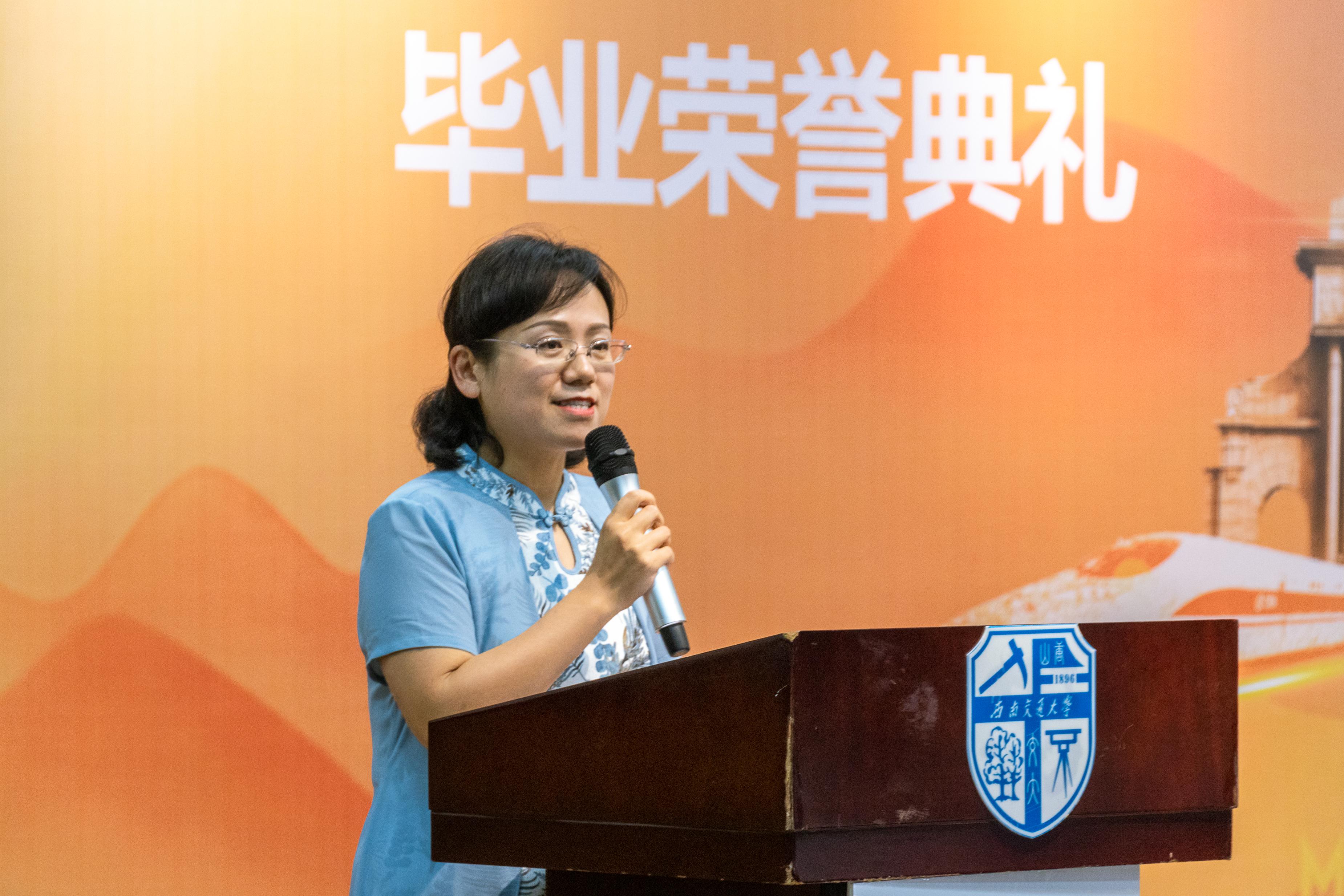 郭鹏副教授发言,作为四年求学生活最亲近的人,班导师在同学们成长成才历程中扮演着不可或缺的角色,“人生即成长”,是郭鹏老师分享的朴实而深刻的成长感悟,“仰望星空,脚踏实地,成败得失,不堕其志”,愿同学们以此共勉。