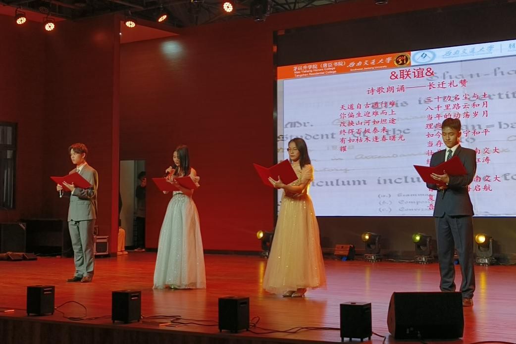 由2023级材料茅班同学原创并编排表演的诗歌朗诵《长迁礼赞》带领我们走进岁月的长河,在感悟历代交大人的奋斗与坚持中,颂赞交大百年校史,畅想新时代交大复兴之路。