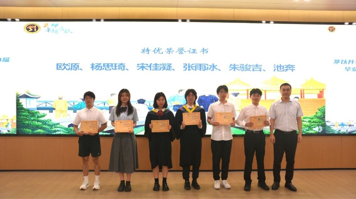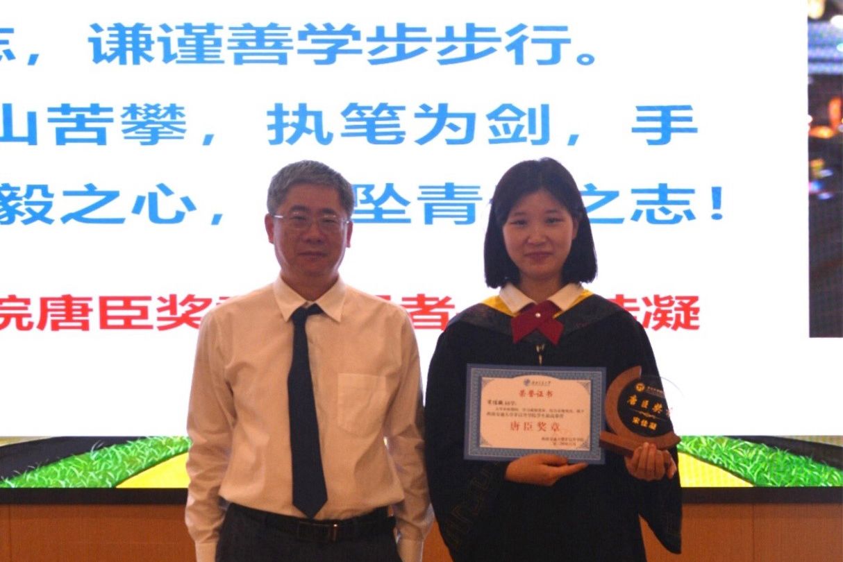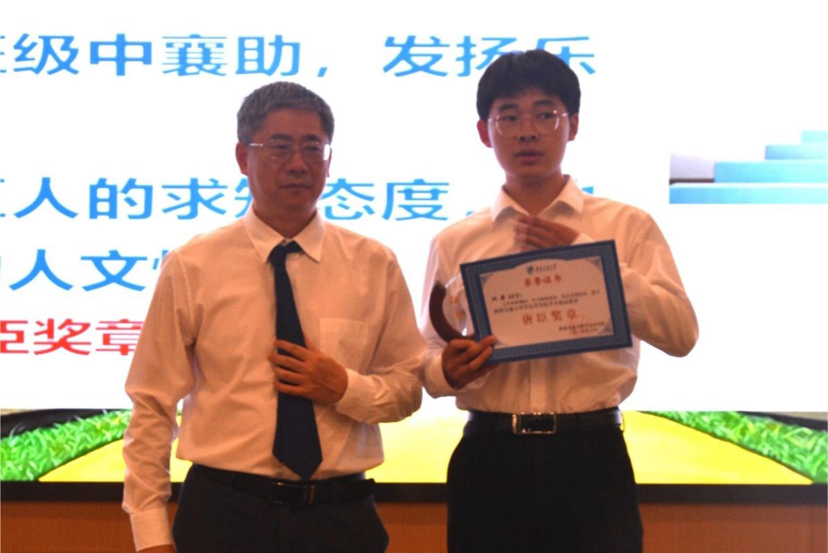 接下来,进入毕业荣誉典礼的表彰环节。校长助理、教务处处长、av影片直播 常务副院长崔凯宣读av影片直播 2024届学生最高荣誉“av影片直播 奖章”表彰文件,并由康国政院长对7位获得av影片直播 奖章的毕业生颁发奖杯及证书。