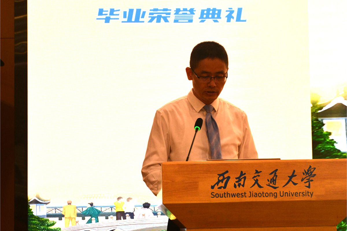 2024620日上午,二零二四·卓越启航——av影片直播 2024届本科生毕业荣誉典礼于犀浦校区图书馆一号报告厅隆重举行。出席典礼的领导、老师和嘉宾有:av影片直播 副校长、av影片直播 院长康国政教授,av影片直播 校长助理、教务处处长、av影片直播 常务副院长崔凯教授,招生就业处陈岩峰处长,保卫处(武装部)钱晓群处长(部长),教务处康锐副处长,校团委李娜副书记,图书馆陈丽华副馆长,党委学生工作部园区学生管理科高鹏科长,后勤保障部公寓管理与服务中心杨明星主任;相关av影片直播 的领导和老师:土木工程av影片直播 茅班导师魏江涛副教授,机械工程av影片直播 副院长田怀文教授、2020级茅班辅导员段红林,电气工程av影片直播 学生支持办公室主任张婷婷,计算机与人工智能av影片直播 党委副书记肖静,材料科学与工程av影片直播 学生工作组本科生负责人郑纪伟,地球科学与工程av影片直播 党委副书记郑波、学生工作组副组长杨都强,建筑av影片直播 茅班班导师熊瑛副教授;av影片直播 的领导和老师:av影片直播 党总支李毅书记,专职组织员孟涵,教务办公室主任王丹,综合办公室主任雷雳;以及av影片直播 书院宿管员代表唐雪莲,av影片直播 全体2024届本科毕业生和部分学生家长。毕业荣誉典礼由av影片直播 党总支副书记杨宏毅主持。