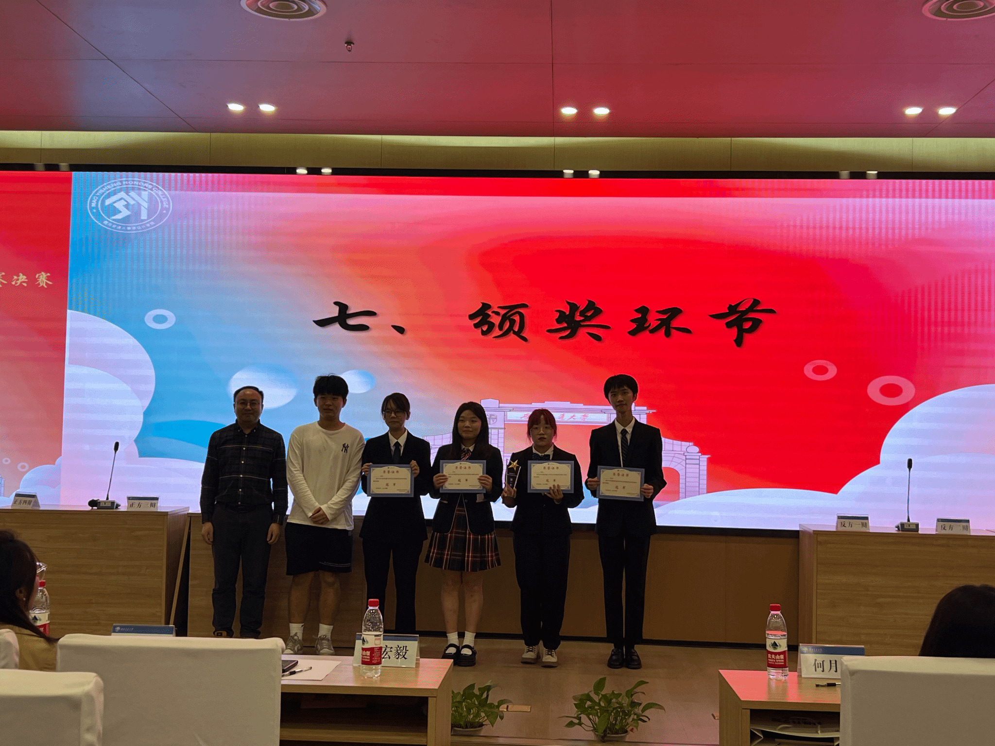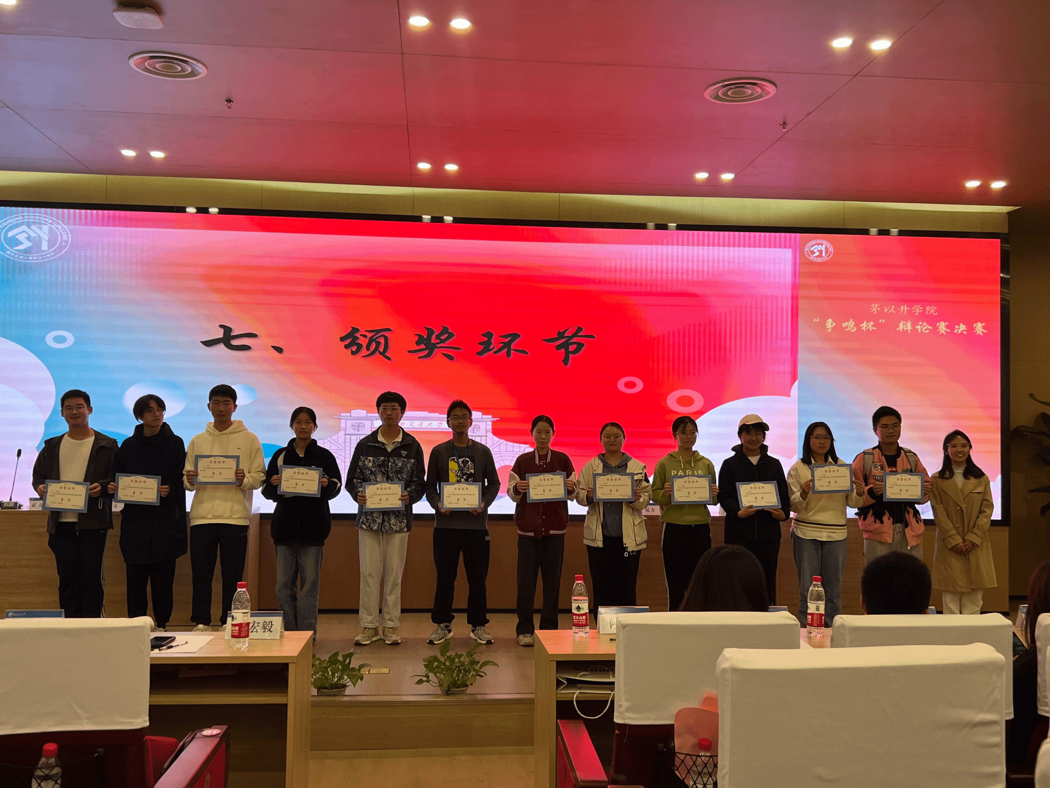 杨宏毅和康志娟分别为获得冠军的土木茅班代表队、亚军测绘茅班代表队、季军计算机茅班代表队及各场比赛的最佳辩手进行了颁奖。