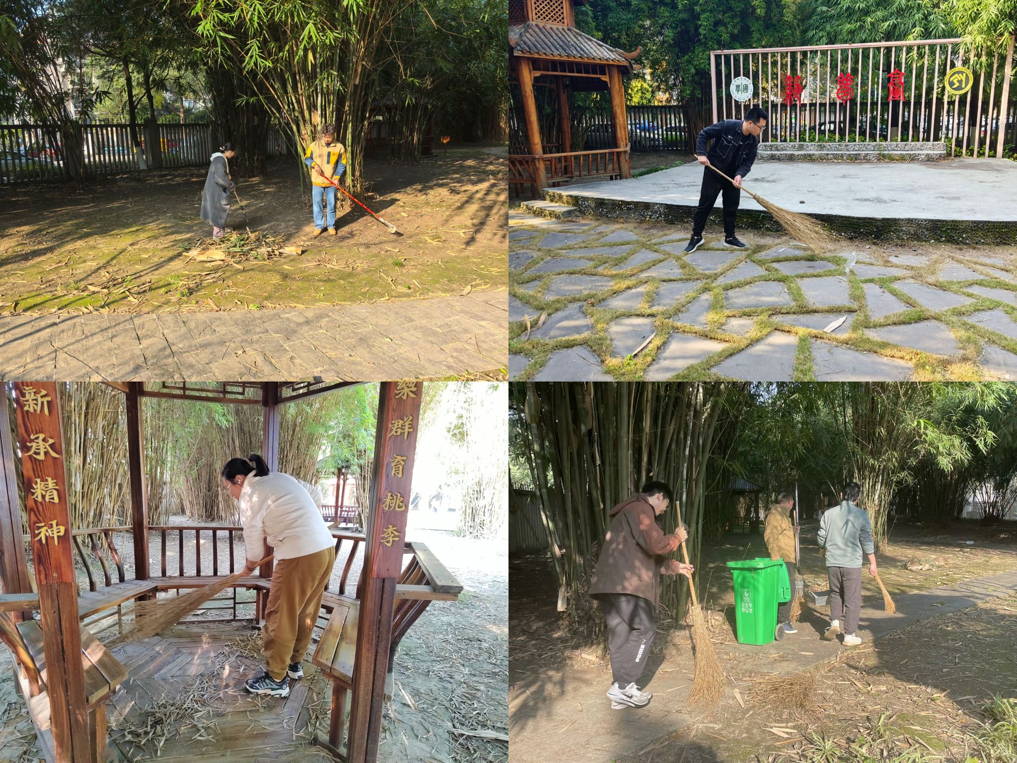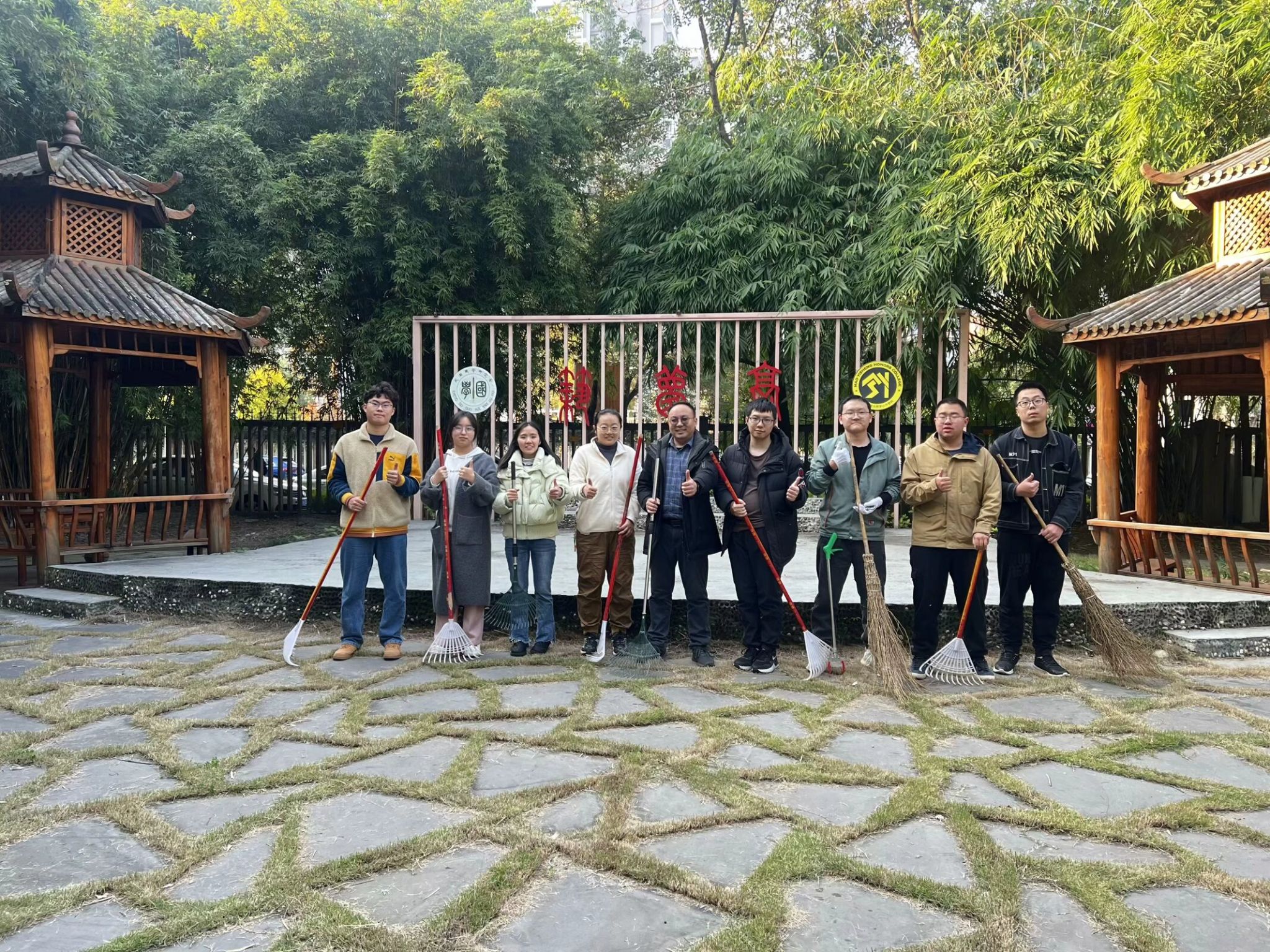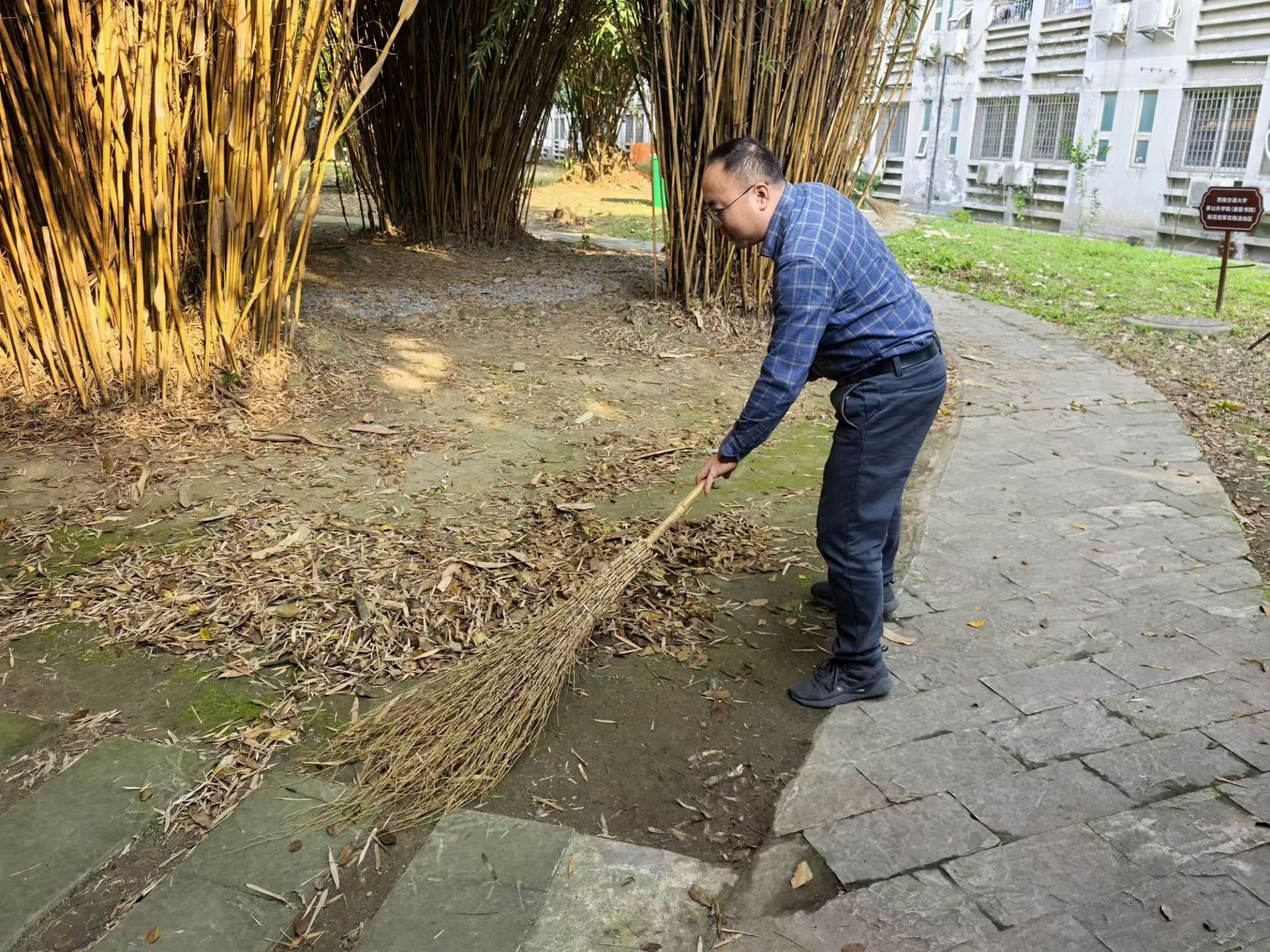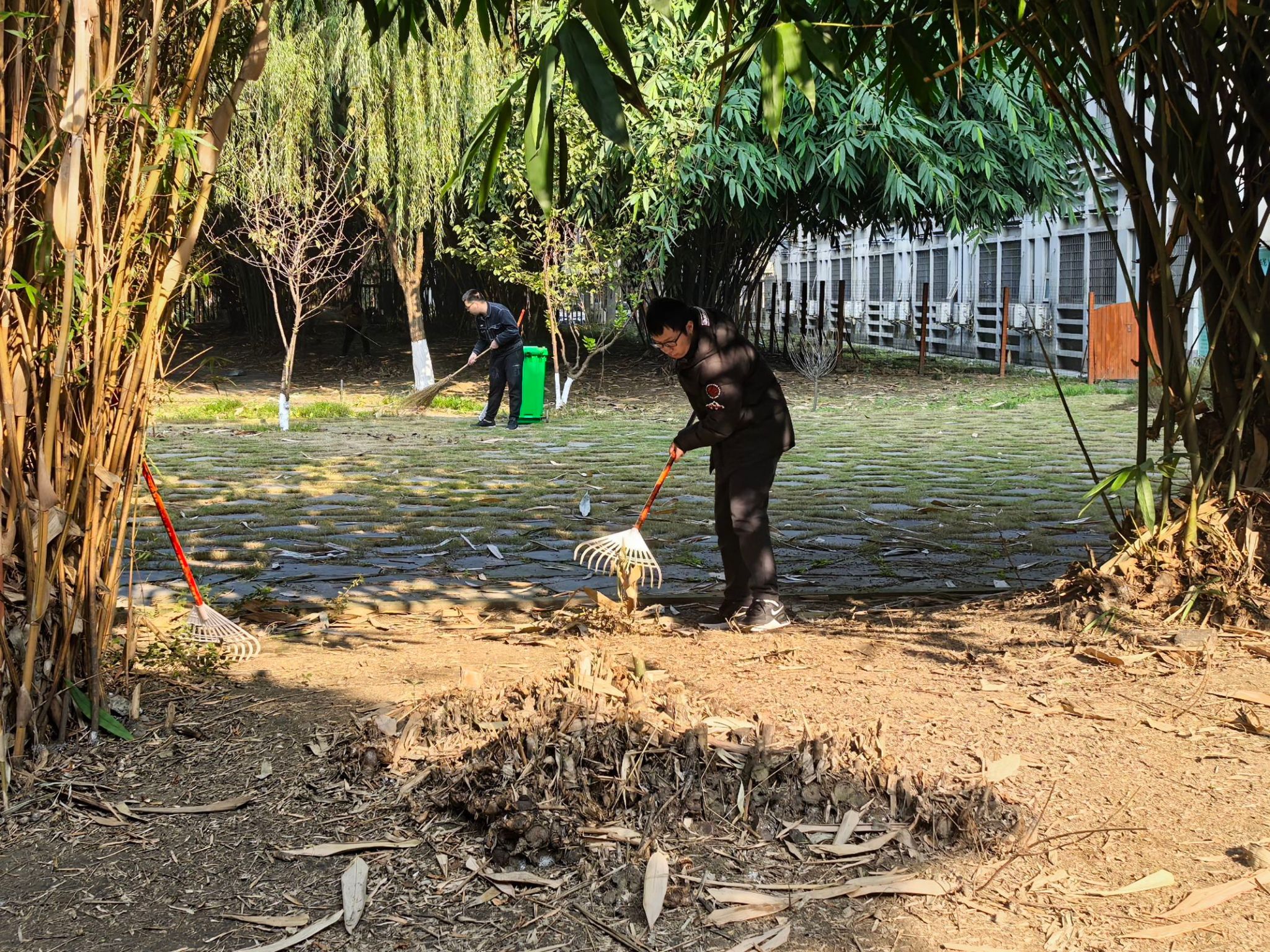 杨宏毅带领着学生们满怀热情,一同前往筑梦园开展室外清洁活动。在秋风的轻拂下,园内的落叶铺满了小径,大家齐心协力地清扫,这些落叶很快被归拢成堆,得到了妥善处理。道路、花坛、休闲设施等各个角落都得到了细致的清洁,整个园区焕然一新,筑梦园更加充满了生机与活力,成为校园中一道亮丽的风景线。