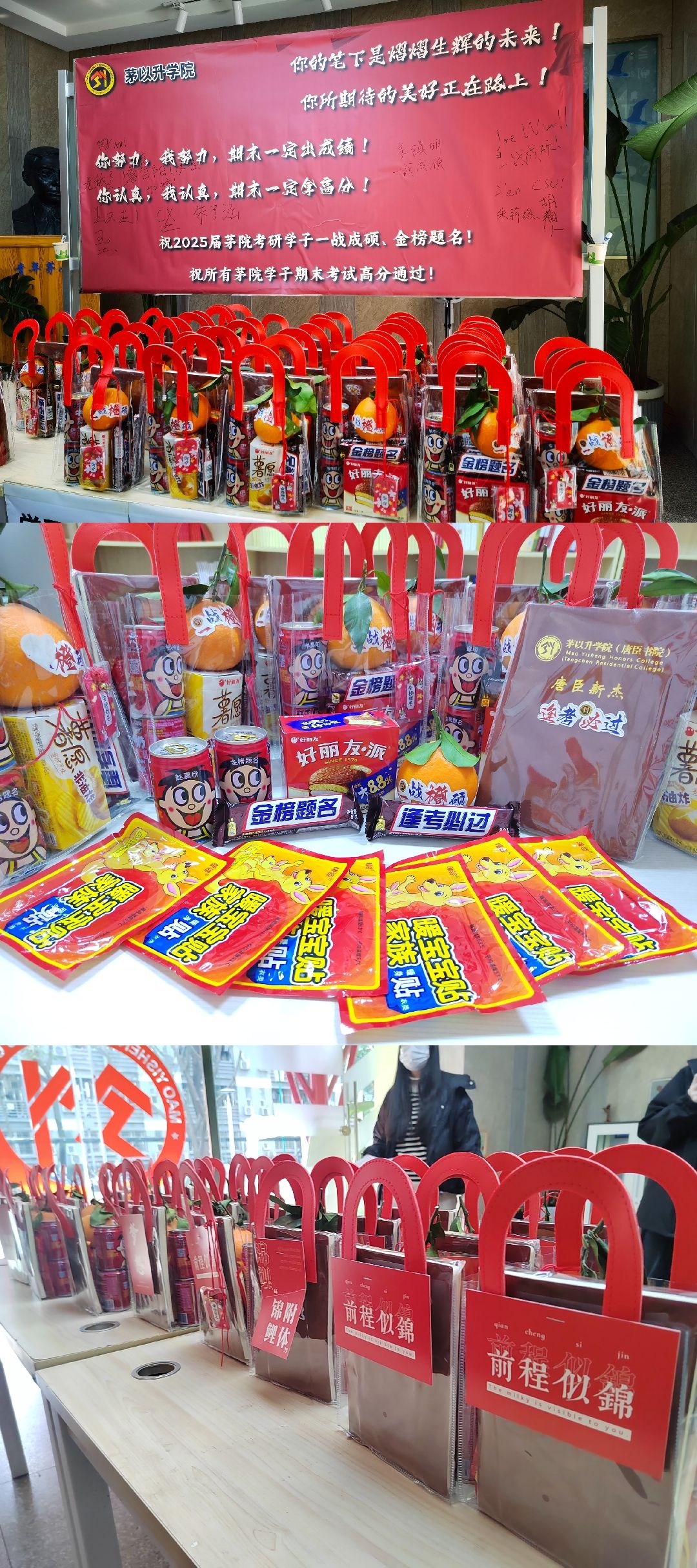 党总支书记李毅、副书记杨宏毅、辅导员康志娟共同参与,他们带着满载祝福的“考研加油包”,为每一位考研学子送上最诚挚的祝福与鼓励。
