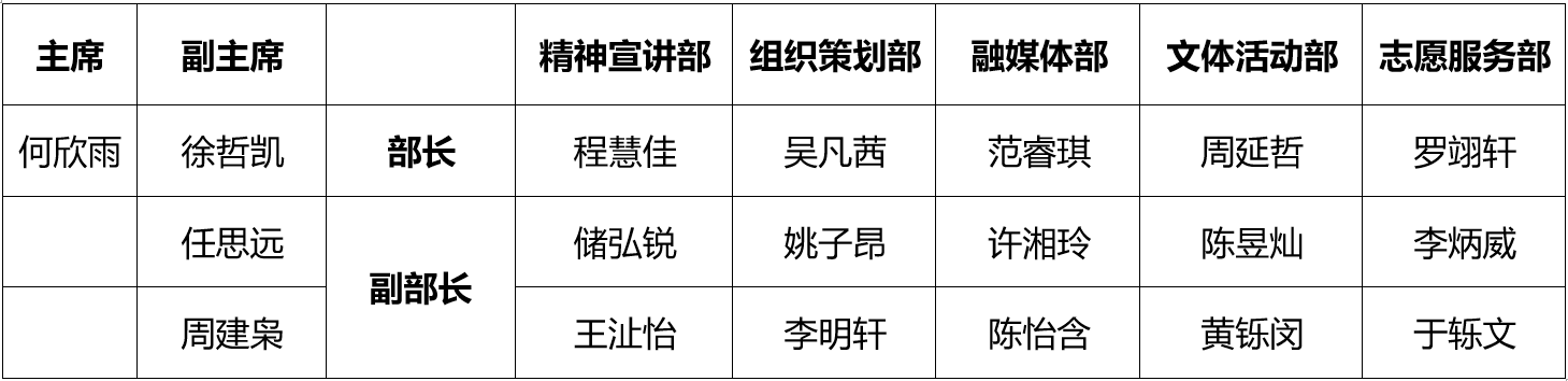 秉承公平、公正、公开的竞选原则,经个人申请、竞聘答辩、综合考察等环节,现将任职名单公示如下(副职不分先后):