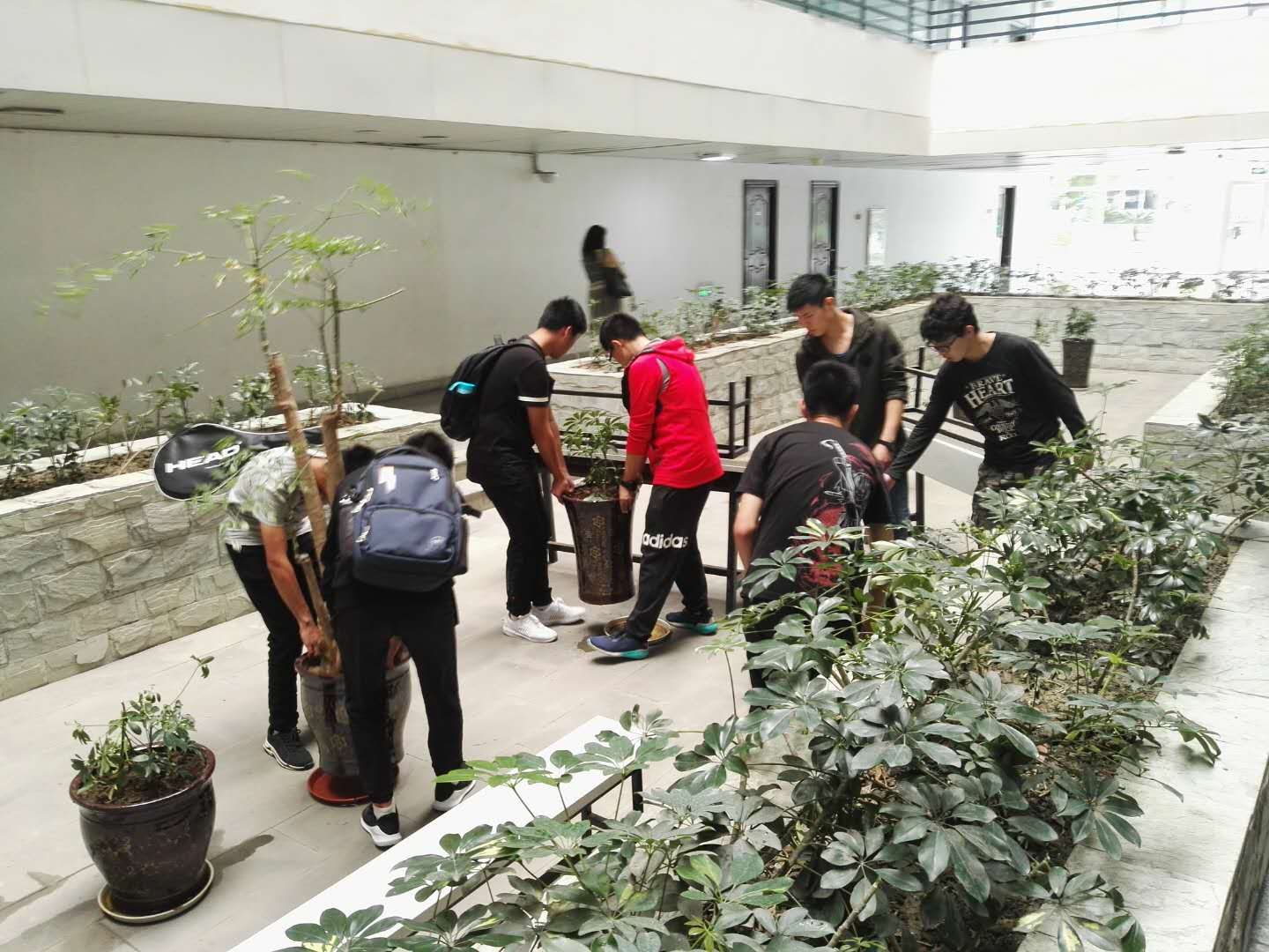 办公区,之前是以条状绿化带围成的下陷式开放的公共区域,甘霖书记经多次现场勘察和设计,计划将其打造成文化生态园,以各类植物、根雕、雕塑、桌椅和办公区两侧的文化墙构成师生学习交流、文化熏陶、课间休憩的公共园区,成为av影片直播