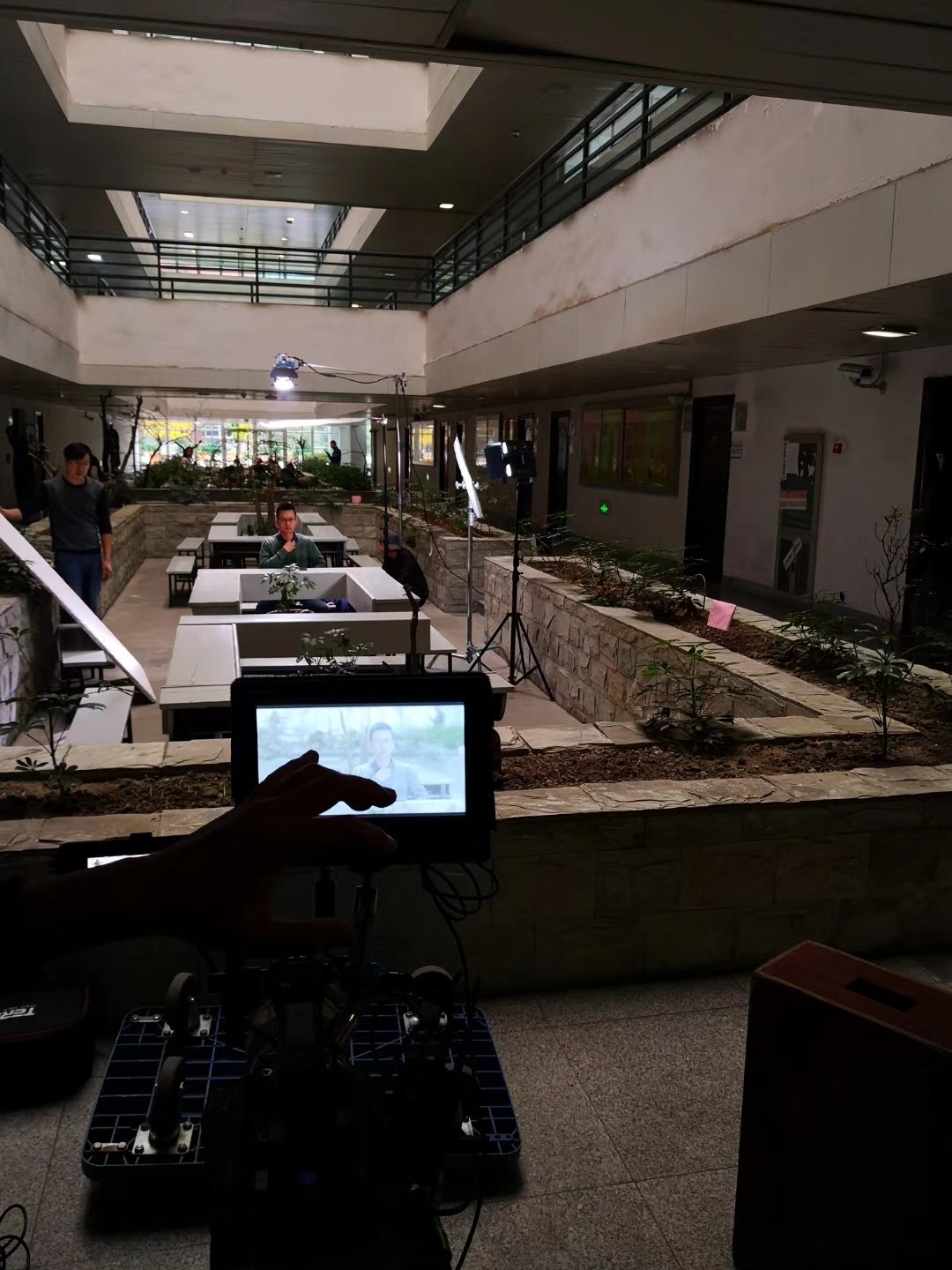 (同学们在庭院取景拍摄)