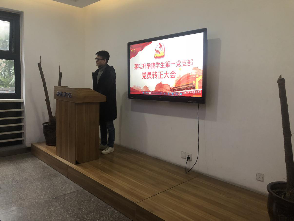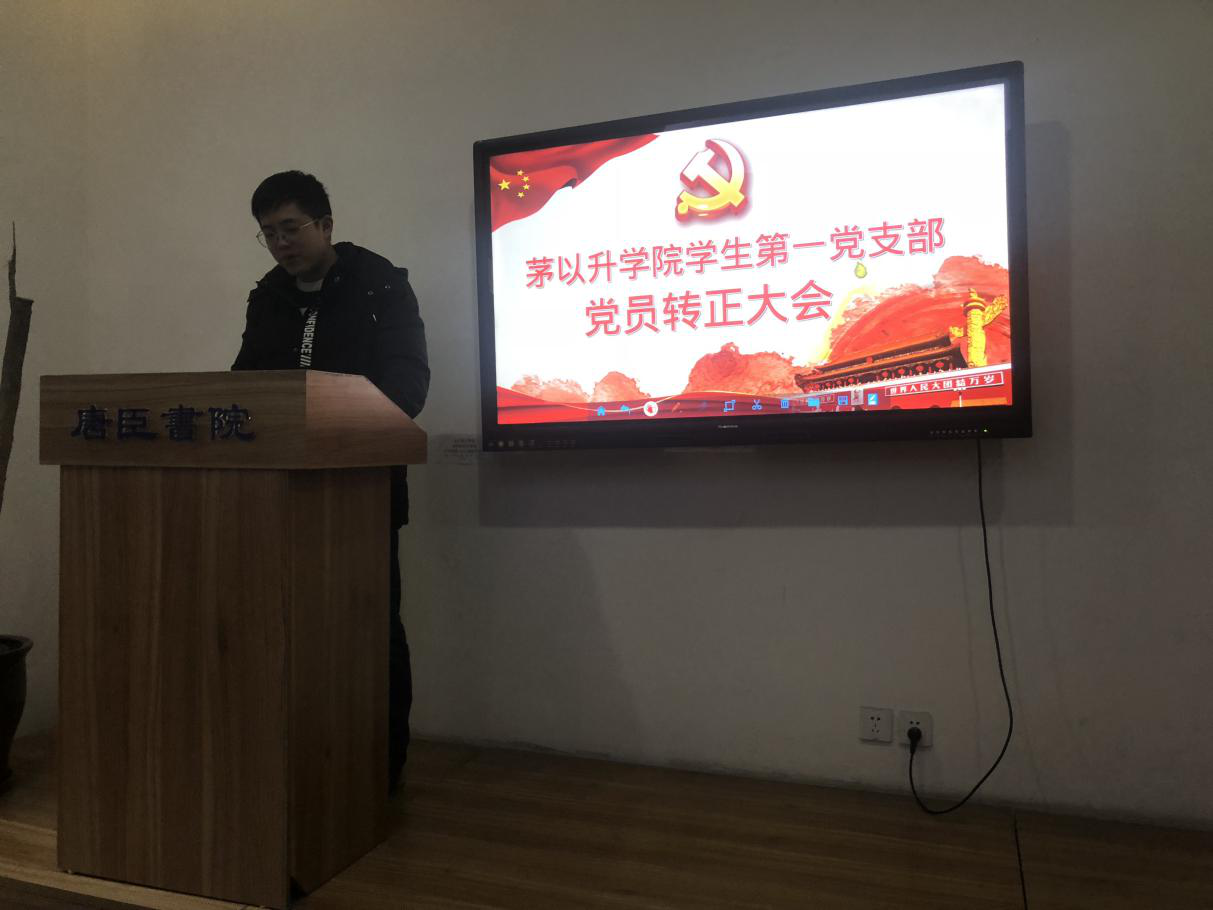 本次大会严格考察了预备党员王文琦同学对党的认识、入党动机及入党志愿,广泛征集群众意见,经支部正式党员无记名投票,一致通过王文琦同志成为中共党员。王文琦同志虚心听取意见和建议,表明成为一名正式党员后,将不断地改善自身、提升自我。最后,支部书记郭佑星总结发言,对新转正的同志进行要求,要求主要包括牢记入党时间、正确处理好组织入党与思想入党的关系、要经得起党组织的考验,牢记两学一做的要求。