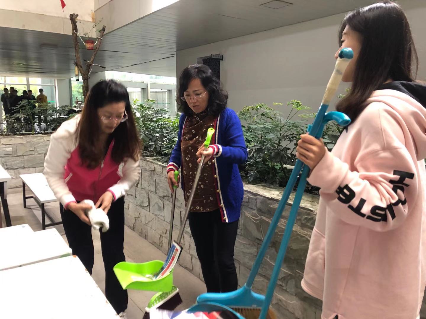 在集体理论学习完毕后,全体教职工来到庭院,在王霞书记的带领下,分别进行打扫地面、浇溉花草及清洁桌椅工作。大家手持扫把、拖把、抹布等工具,为心桥庭院打扫卫生、灌溉花草,共同呵护大家集体生活的家园。活动期间,大家合作相助,既增进了感情,又美化了庭院环境,天气虽冷,但大家用爱温暖了整座庭院。