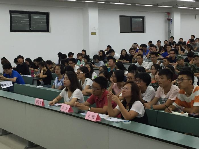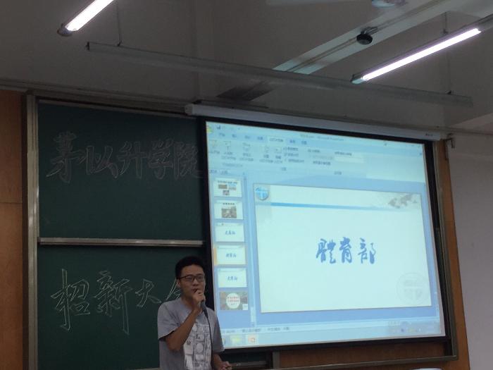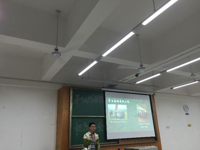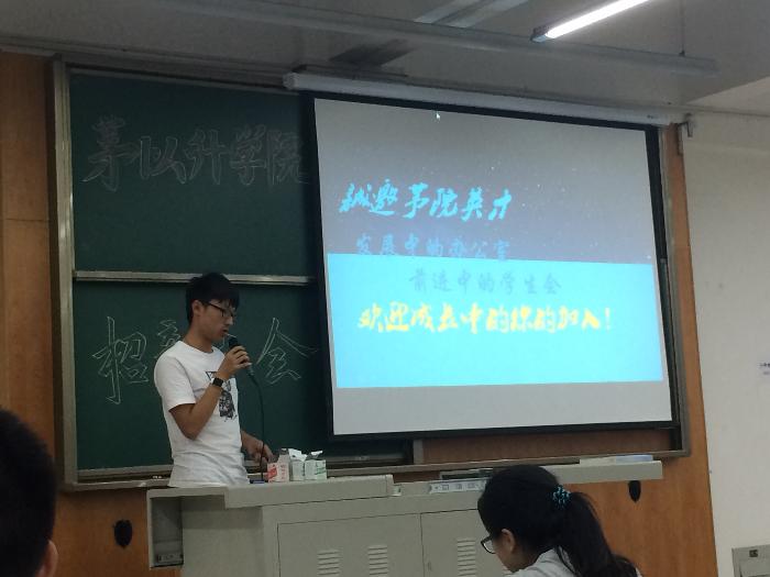 书院管理委员会先后做介绍后,学生会主席曹一民进行了学生会宣讲,向2016届新生详细介绍了学生会的各部门职责以及举办的各项活动,希望同学们踊跃报名加入学生会。
