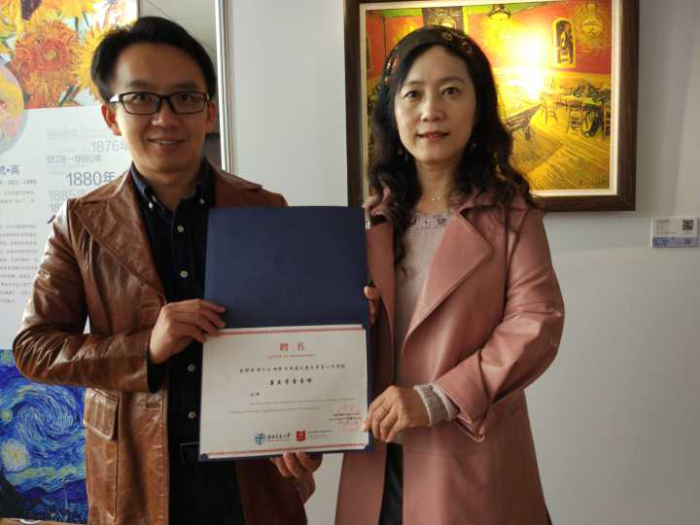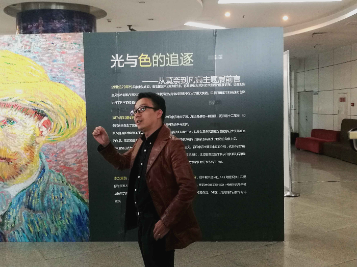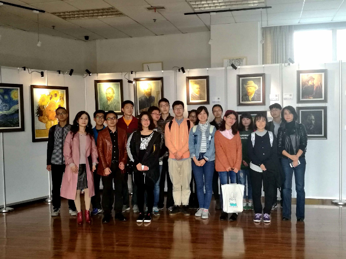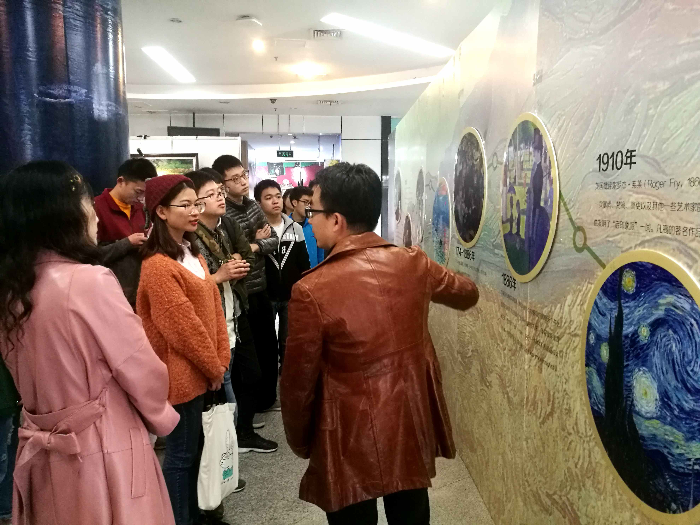 随后是主展厅的讲解,同学们跟随舒老师走进了陈列梵高作品的独立展厅,和这位传奇人物近距离接触。无论是闻名遐迩的《星月夜》、《包扎耳朵的自画像》,还是不那么为人所熟知的《吃土豆的人》,同学们都能从其中读到梵高苦难坎坷的人生,以及他不刻意寻找美好的随性自然。同时从《向日葵》那金黄跳动的鲜艳笔触里,同学们也能够感受到纯粹源于艺术的热情与生命的张力。在该展厅参观结束后,图书馆读者服务部处长刘文华向舒老师颁发了av影片直播