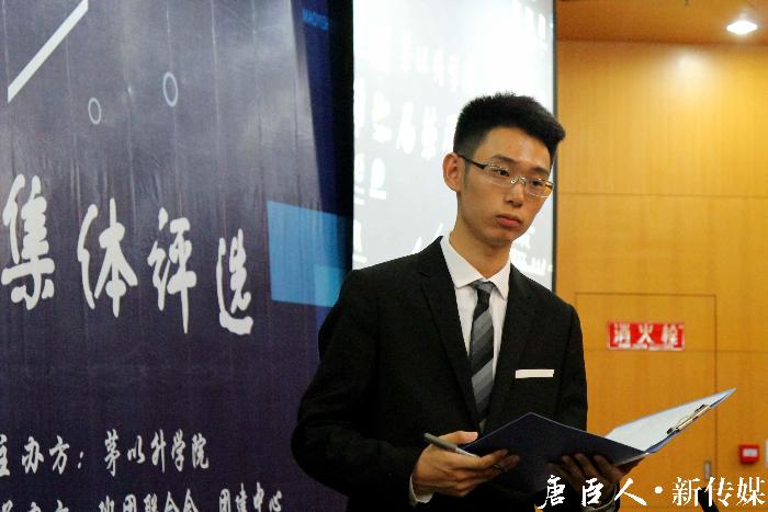 茅院(材料)2016-01班最先上台,他们用一段视频展现了班级风貌,随后从班徽与班服、学分与成绩、软实力指标、班团一体化建设等方面介绍了他们在班级建设上所取得的成就。并详细介绍了班级实践活动,充分体现了学以致用的重要性。