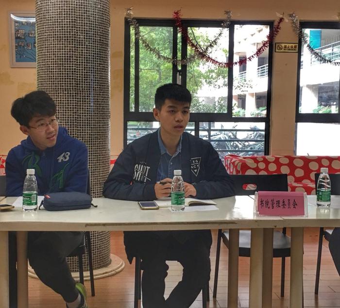 志”栏目。下阶段,书管会将举办“寝室装潢大赛决赛”、“特色寝室评比”、“橙读品鉴日系列活动之模拟炒股大赛”等特色活动。主席陆禹佳提醒大家一定要注意活动经费报销的规范化问题。