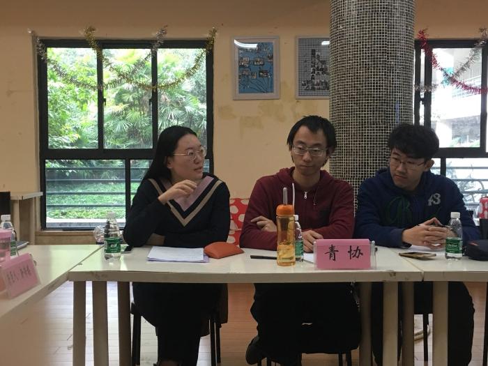 学堂”、“学习伙伴”、“答疑坊”、读书会评选”等特色活动。主席张思远提出,部员的积极性目前还不是太高,希望各组织可以充分探讨其解决办法。