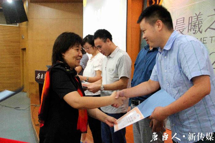 党总支书记栗民副教授上台为新生班导生颁发证书。