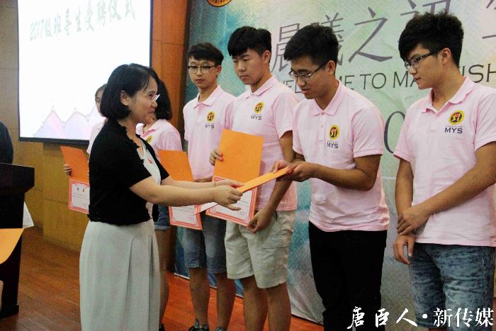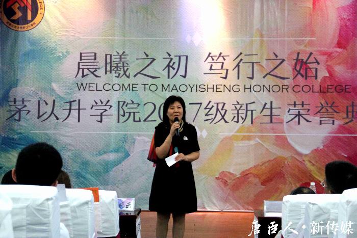 院长冯晓云教授为2017级荣誉班级导师颁发聘书。接着,唐跃勤老师作为荣誉班导师代表发言。唐老师激励同学们在大学生活中获得成长,在各方面提高自己的个人能力,能够提升自我,不放松、不放弃。之后,av影片直播
