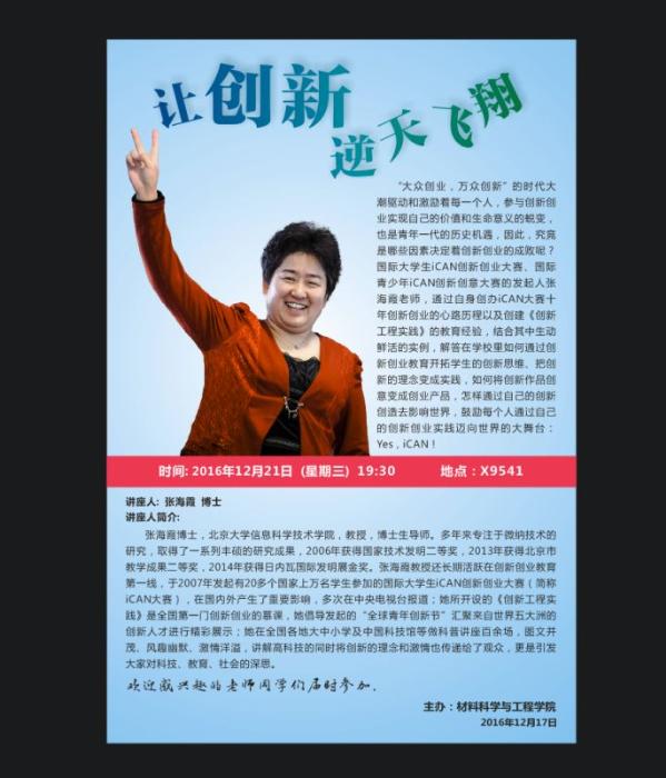 讲座主题:让创新逆天飞翔