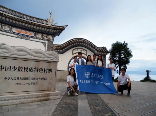 虽然天空下着细雨,但是并没有阻止我们团队前进的脚步。我们不仅观赏了许多精美的扎染艺术品,还亲自在白族阿婆的教学下,每个人亲自扎染了一块属于自己的扎染。虽然针法粗糙,但是大家都很开心。因为扎染本来就是“染料多端浅深随意,布色不一浓淡任人”的传统技艺。扎染后,我们就扎染历史,扎染技艺传承,扎染的经济效益问题仔细向段树坤先生请教,收益颇丰。