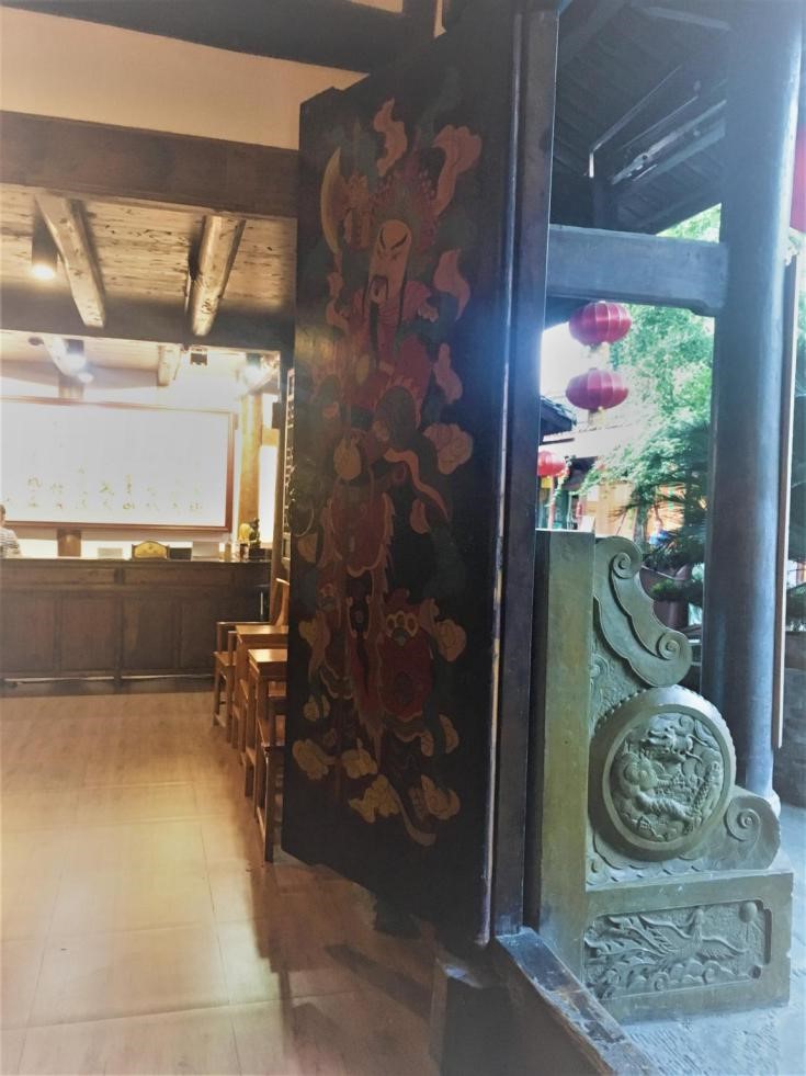 在了解各种民俗文化的过程中,我们有幸采访到陈爷爷(陈文大,四川省美术家协会会员,阆中市美术家协会名誉主席,美术副研究员,阆中市诗书画院副院长),听他给我们讲述阆中最具传统文化特色之一的皮影文化。在他绘画的皮影模板色彩柔和,让人赏心悦目;而他所画的关老爷,也是栩栩如生。我们在古城里某处院子大门处,也是亲眼看见了陈爷爷亲手画的关老爷。