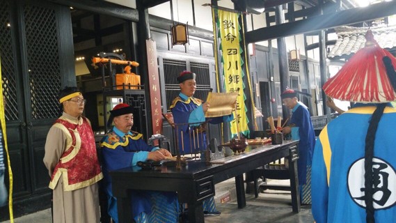 之后,我们来到了这座古城的衙门,即川北道署。在这里,我们了解了衙门中设置的各种不同的房间,通过介绍来明白它们的作用,我们知道衙门能把每日如此繁多的事务分配得井井有条。在阆中历史文化保护研究会和政府的大力支持下,保留了许多的历史文化估计和传统文化习俗,这也是阆中古城为什么在现代化浪潮下仍能够保留属于自己的文化古韵的重要原因之一。