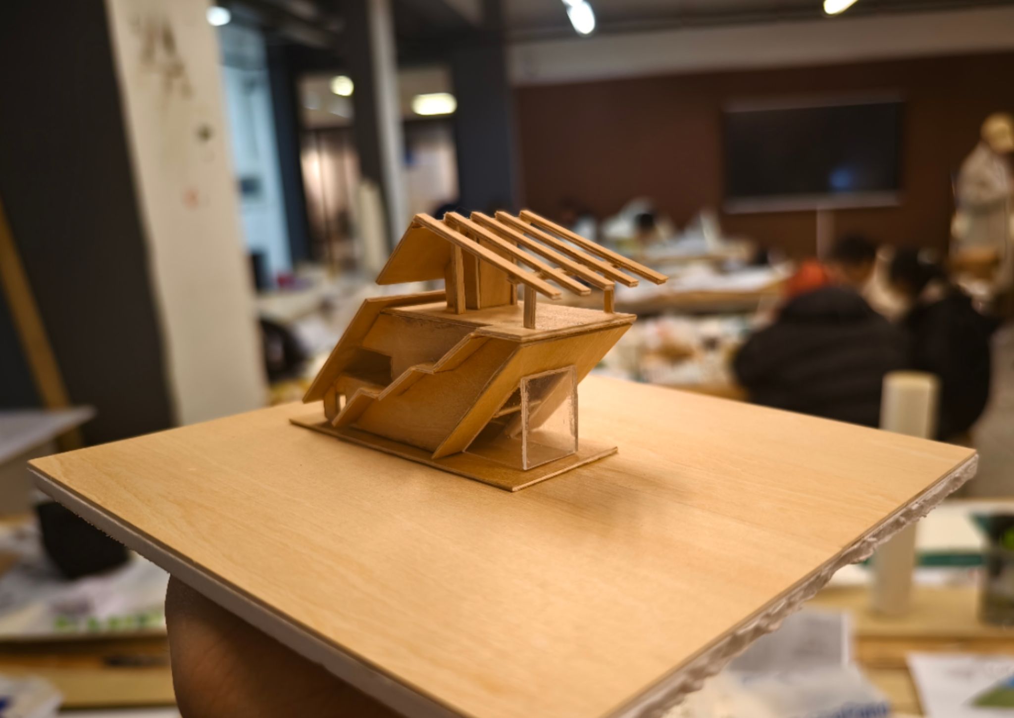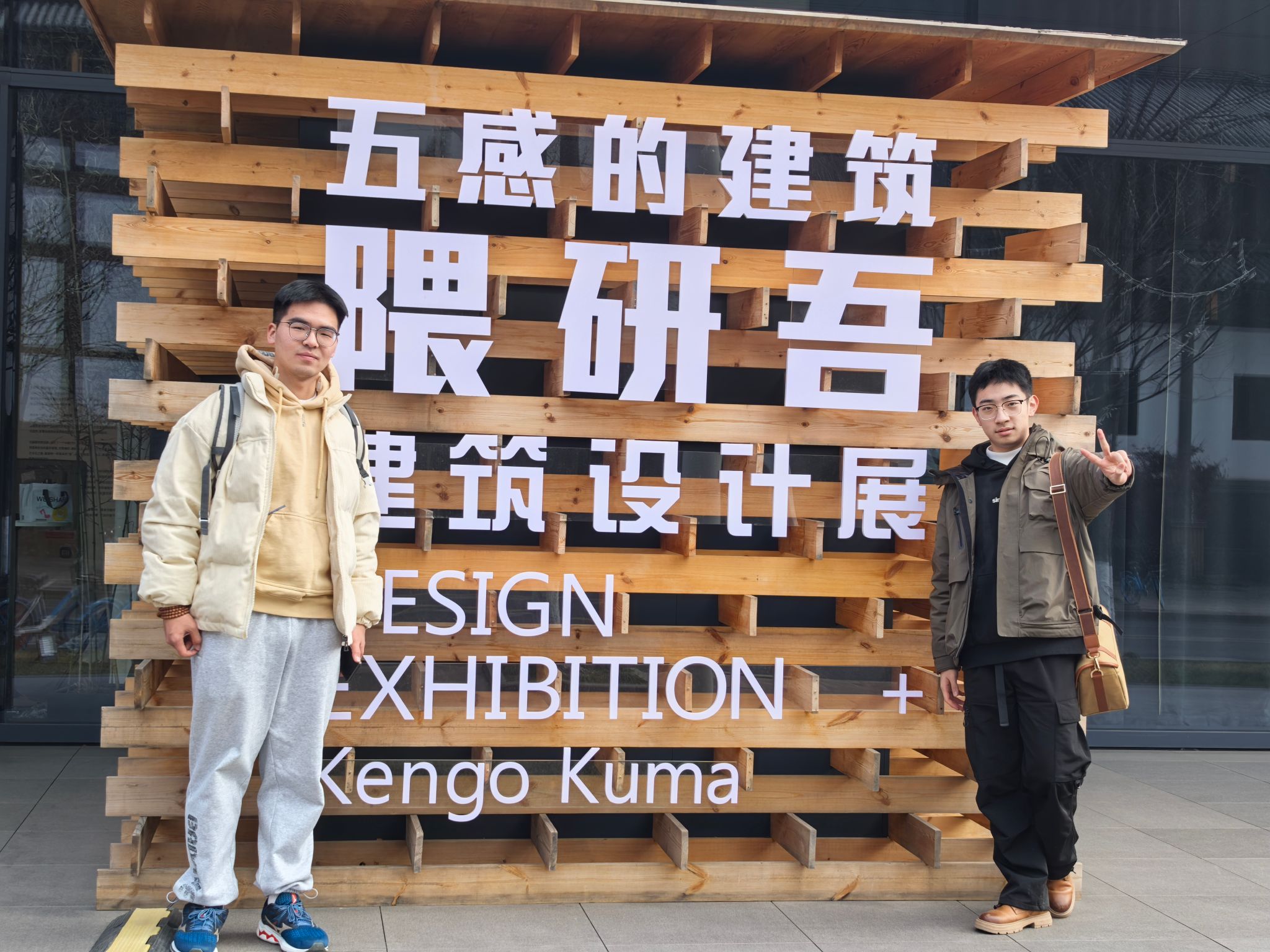 这个看似寻常的滨海建筑,通过其独特的木构叠砌与光影游戏,完美诠释了东方建筑“消隐于自然”的哲学。然而,当我们试图在模型和图纸中还原设计逻辑时,却始终无法传达那种材料与空间的诗意对话。这份未尽的困惑,在偶然间化作寒假赴杭州探访隈研吾建筑展的先验,一颗课外由隈研吾为切入点,继续探寻建筑设计理念的种子悄然埋下······
