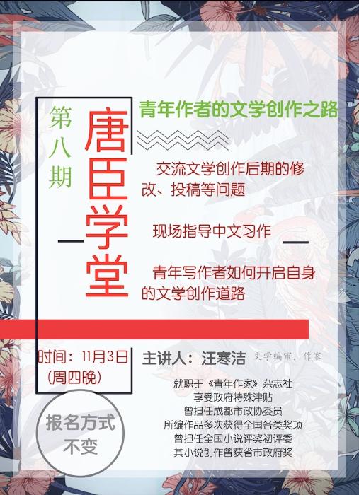 讲座主要就文学创作后期的修改、投稿等问题进行专业交流,围绕中文基地班学生的习作进行现场指导,并从文学编辑视角谈谈青年写作者如何开启自身的文学创作道路。