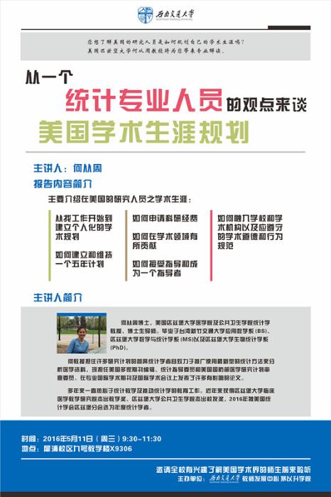 【学术海报】从一个统计专业人员的观点来谈美国学术生涯规划