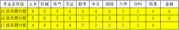 (2)优秀学生干部(共58名),名额分配如下: