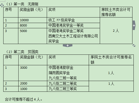 2、茅以升科技教育基金工程教育奖(只针对土木班),1名,评选办法详见附件2;