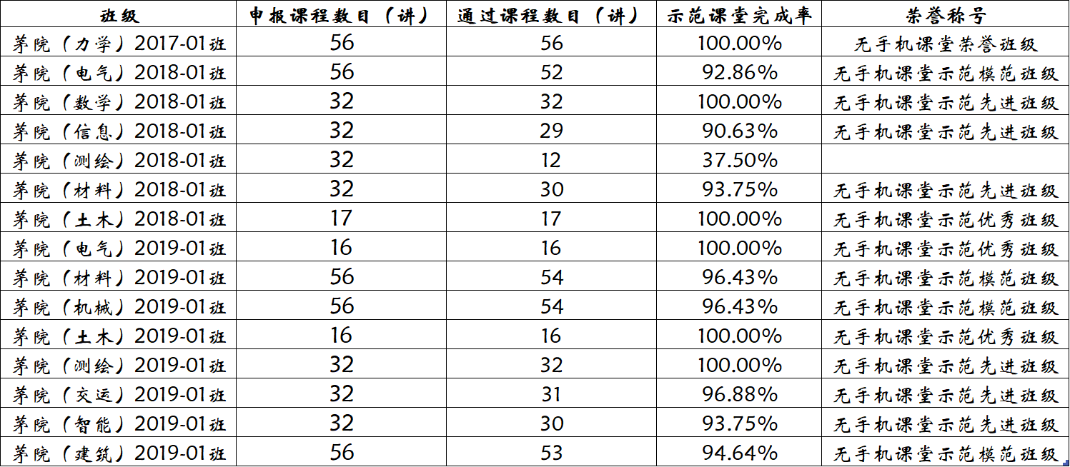 av影片直播 第七期无手机课堂示范班活动已于2019-2020学年第一学期圆满完成,且取得了较好的实践效果,现根据《av影片直播 av影片直播 无手机课堂示范班管理办法》, 将各班级所获荣誉称号情况公示如下。