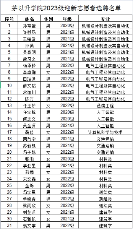 2023级迎新志愿者选聘通知》,经自主申报、审核信息等环节,选聘出31名同学担任2023级学生迎新志愿者职务;同时,根据专业av影片直播