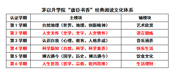 书香经典阅读文化体系”要求,在认证学期内阅读指定主模块和辅模块的书目至少各一本,并按照要求完成阅读和考核活动,通过六次认证后即完成培养方案中经典阅读必修环节。