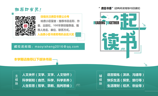 为集思广益,现向全校师生发出推介恳求,推荐优秀的书目以供学生阅读,推荐即有奖品赠送。