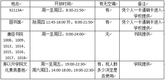 四、 自习室安排