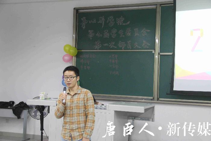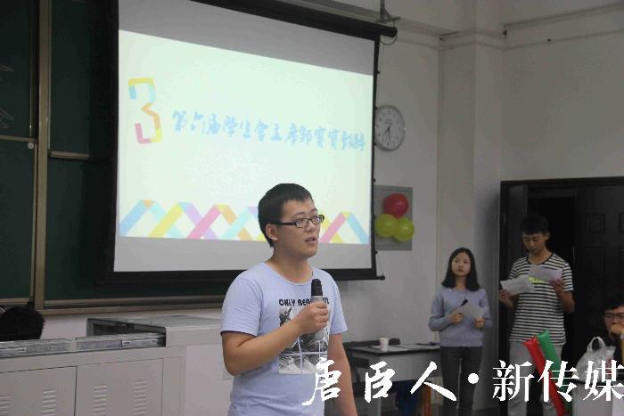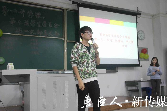 简短而又隆重地介绍了到场的辅导员、第六届及第七届学生会主席团等各位嘉宾后,第七届学生会部员大会正式拉开了帷幕。