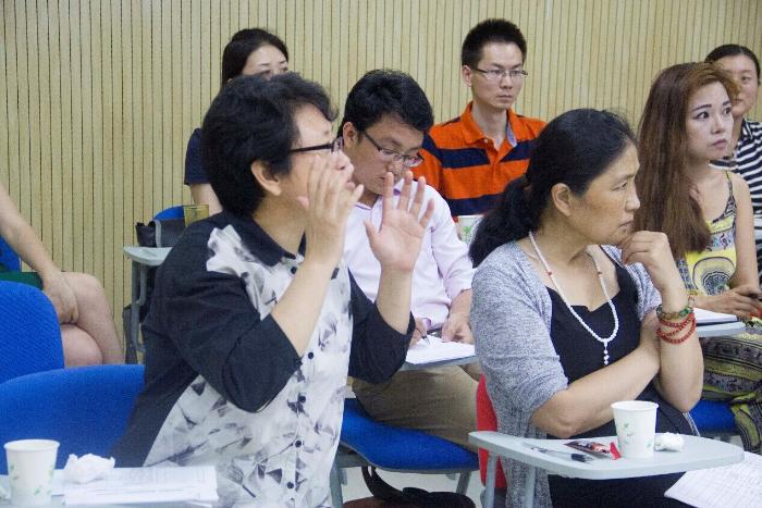 的朱洁老师向在场老师讲述了自己曾经在课堂上安排同学们讨论的一个问题,并谈到自己对于创新的看法,创新并不单单是一个孤立的研究过程,而是一套系统化的流程。一套完整的创新体系应当包括创新的方法,创新的技术支持,以及创新成果的商业化推广。而这门创新课程将对同学们创新能力进行系统化培养,以动心、动脑、动手、动脚为手段,以增强学生创新意识、拓展学生创新思维、提升学生创新能力为目标进行课程的建设与开展。