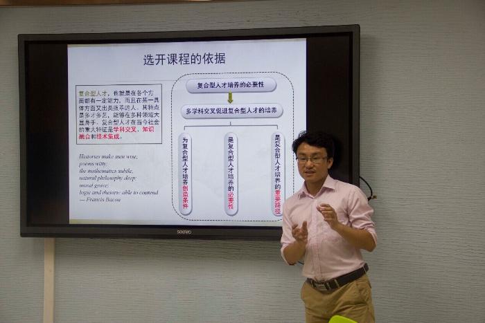 的张海涛老师申报课程为《纳米能源与集成系统》。张老师指出,复合型人才,就是在各个方面都有一定能力,而且在某一方面又出类拔萃的人才。复合型人才应当具有学科交叉、知识融合、技术集成的基本特征。这门课程将通过交叉及前沿学科的理论与实践教学,提高学生对多学科知识的学习的能力及对前沿科学的判断能力。除此之外,还将注重学生自主性地分析解决问题以及团队协作能力。由于课程内容专业性较强,该课程将制定课程研究四大项目,分别为:振动发电系统在转向架振动及传感中的应用,水力发电系统在自驱动功能系统中的应用、风力发电系统在桥梁无损检测中的应用,纳米发电系统在流量监测中的应用。