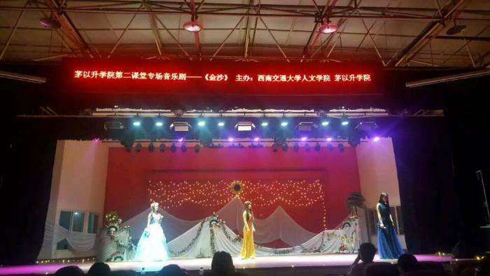 联袂打造的音乐剧《金沙》在一食堂三楼的礼堂内拉开了帷幕。
