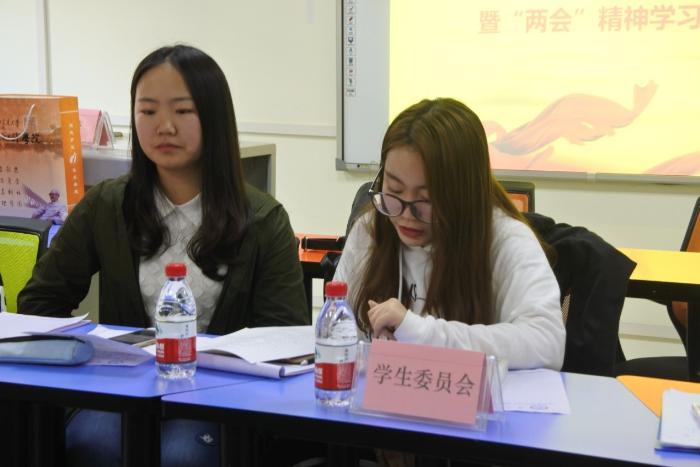 班联上学期完成了迎新工作的统筹与分配,与团建中心一起举办了优秀班集体评选。下学期将继续在院党总支的引领下开展班团工作,拟于五月份举行优秀团支部评选。理事长张钰姝也谈到了班联工作的缺陷与不足,如各年级班团干部缺少交流与配合不够等问题。