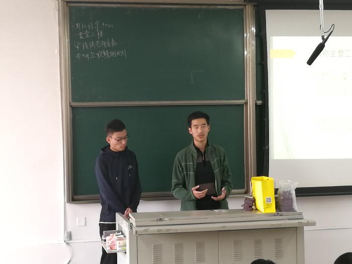 最后,茅院(电气)2017-01班胡光、茅院(电子信息)2017-01班徐庚辰两位同学分享了他们在假期开展的山东临沂精准扶贫调研项目。他们依次讲述了活动流程、安排进度、组内分工等工作内容,分别从政府精准扶贫的主要工作、扶贫点的设施建议、基础设施建设效益等方面讲述了他们的调研详情以及体会。在调研的过程中他们采访了扶贫对象、政府相关工作人员等,对精准扶贫工作有了更深入的理解。