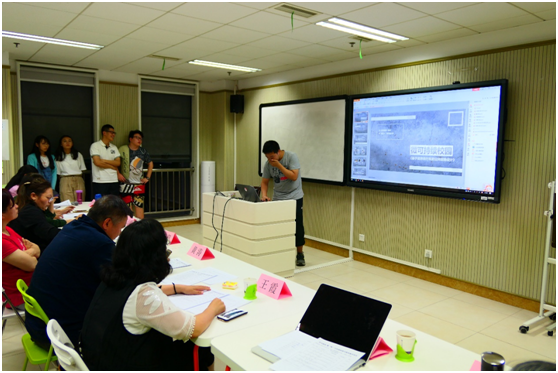 第六组上台答辩的是孙泽达小组。该组也从校园内废旧自行车出发设计相关公共设施,如轮胎做成的秋千、椅子等,使校园环境整体协调、统一,为学生营造舒适的学习和生活环境,新颖别致的设计方案和较多的练习成果,给老师打上了一剂强心针。