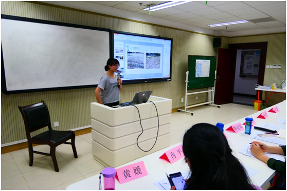 李君、王子昂、洪宇超、曲植、李宇轩组成的小组作为2017年“微”可持续性校园团队之一,其课题是“场地植物种植”。组长李君从设计方案、进度安排、经费支出、和实施细节四个方面介绍了小组课题项目的具体细节。接下来,该组将继续投入到场地内植物的种植和养护,并号召更多茅院学子参与可持续项目,接触大自然。