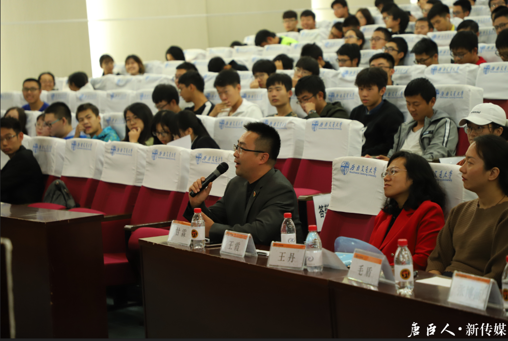 接着,各班如八仙过海,各显神通,各自以别出心裁的方式,展示了各班的独特风采。茅院(机械)2017-01班全班高歌一曲《我的天空》,以饱满的热情活力展现学子风姿;茅院(交运)2016-01班以今夕对比,讲述了班集体从开始的稚嫩逐渐走向成熟的成长之路;茅院(数学)2017-01班也另辟蹊径,以独特的答到形式与释放压力的“吐槽大会”,展现班集体的生机勃发。独居风格的各种展示,得到了观众的阵阵掌声。而回答评委老师的提问时,各位答辩代表也是妙语连珠,引经据典,展望未来,描绘了一幅幅班级发展蓝图。
