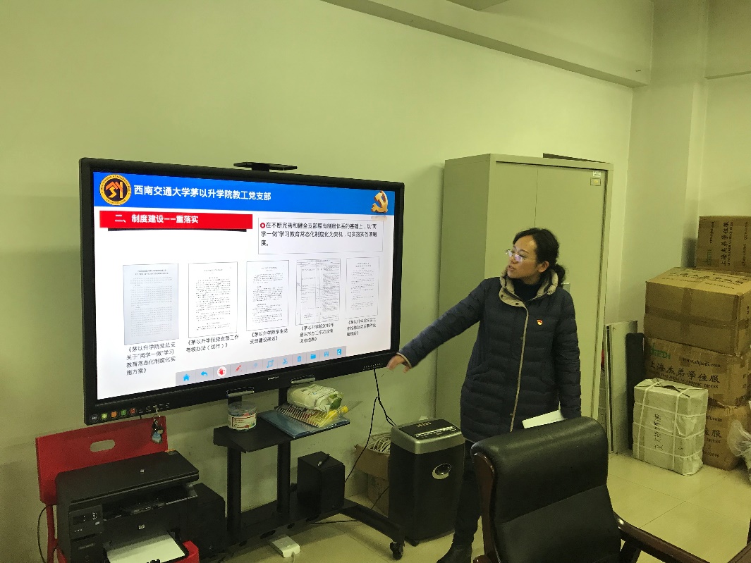 教职工党支部工作进行了总结。王霞分别从班级建设、制度建设、组织建设、思想政治建设、作风纪律建设、目标落实与工作创新、资料管理和工作亮点八个方面分别进行介绍。教职工党支部本年度认真抓好落实“三会一课”制度、民主评议和民主生活会等各项制度;着重加强理论学习,深入领会党的十九大精神,积极贯彻落实习近平新时代中国特色社会主义思想;认真总结、细致梳理,完善相关管理制度,不断加强av影片直播