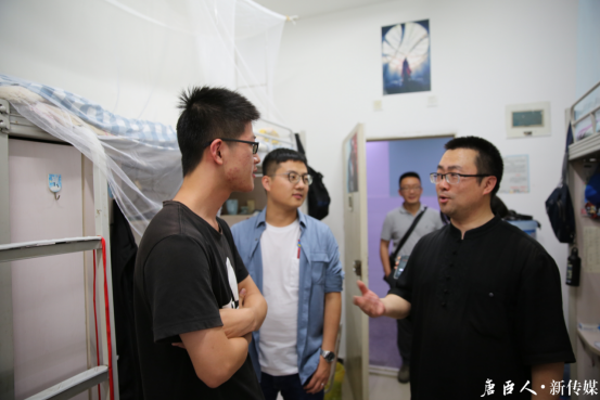 首先,甘霖书记分别从四个年级各抽1-2个宿舍进行走访。对于2017、2018级的同学,主要询问期末考试准备情况和关于中美贸易战的看法。对于期末考试,同学们表示已经制定了考试复习规划,能够按照计划合理安排时间。而关于中美贸易战,同学们认为,中美贸易战不会长久,中国不愿打,但也不怕打,霸权主义一定不会在世界多极化潮流中占了上风。甘霖书记表示,青年学生是祖国未来的希望,社会发展的顶梁柱,并鼓励同学们刻苦学习,努力成为优秀人才,为祖国未来之强盛添砖加瓦。