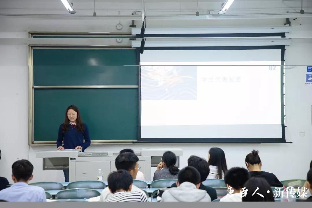 来自示范先进班——18级中文班的李琪瑶分享了这一年中的活动开展心得。她提出:开展无手机课堂明显提高了本班的课堂质量,对同学们的身心健康产生了积极影响。潜移默化中,有些同学不仅能养成课堂无手机的习惯,甚至能够做到不把手机带入教学楼。