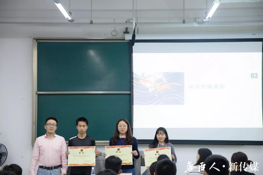 推选出了若干示范先进班级,分别是:2017级材料班,2018级数学班,土木班,材料班,中文班,测绘班,信息班,电气班。由王霞书记,毛盾老师,任淑莉老师为他们颁奖并合影留念。