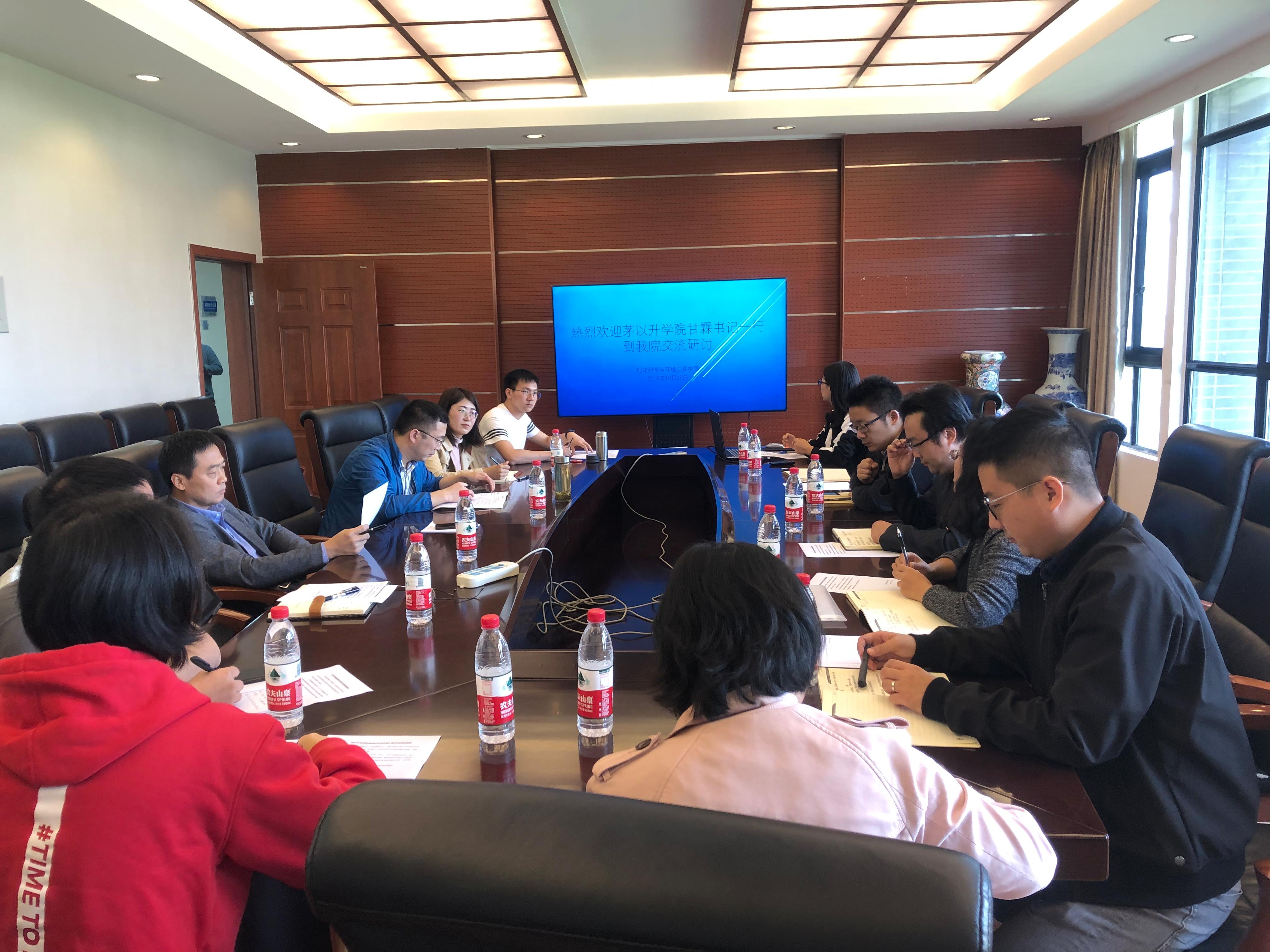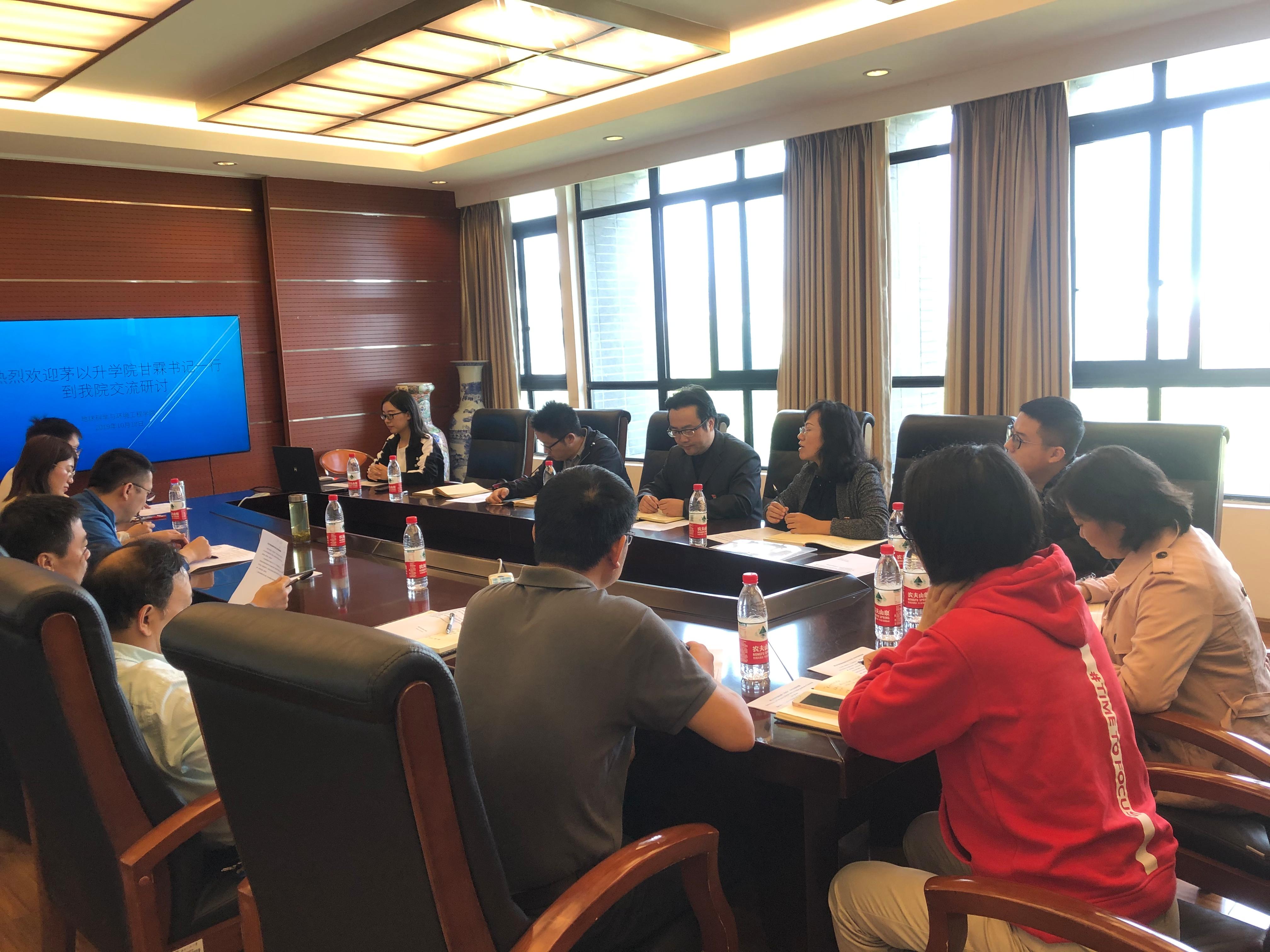 ,党委书记关秦川、副书记傅尤刚、副院长欧阳峰等共同参加座谈。甘霖书记首先介绍了茅院发展概况及本次调研的主要目的,希望能够在人才培育和学生综合素养提升、科研训练合作与交流等方面取经学习。傅尤刚书记对甘霖书记一行到来表示欢迎,并对av影片直播