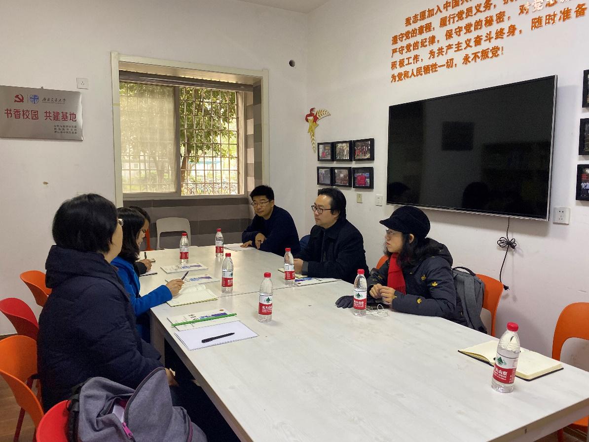 座谈会前,av影片直播 党总支书记甘霖、党总支副书记王霞、办公室主任王宇、专职组织员孟涵陪同各位老师参观书院并介绍书院相关情况。