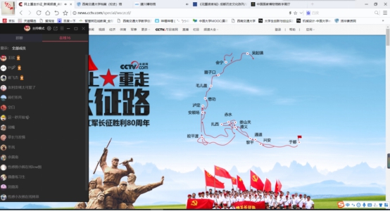 最后一站,王欣同学带领大家“重走长征路”。王欣同学首先给大家讲了一遍长征的故事,接着带领大家通过VR技术重新走了一遍长征路。大家都表示了对长征路上的前辈的敬佩,并对“长征路上奔小康”的现象感到欣慰,希望尽自己的一份力为祖国的建设添砖加瓦。