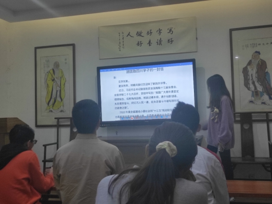 团课在庄严的中国共青团团歌中拉开帷幕,在全体团员起立奏唱团歌后,由团支书何以凡担任主持人主持本次团课。首先深刻诠释了信仰的重要性,提出了勇敢坚持路线不动摇、重视团队精神、培养集体荣誉感的重要观点。同学们在深刻领悟体会后接着集体阅读《团团致四川学子的一封信》,其中首先说明了团员与团课间的关系以及接受团课教育的重要性,在此基础上,关键内容可总结为“尊重与自己无关的事”、“关注与自己有关的事”、“努力去做与自己密切相关的事”三点。 随后,主持人讲解了团校纪律,签到,请销假制度以及考核标准。这些内容就对同学们提出了严格遵守纪律、端正对团课态度的重要要求。紧接着,同学们学习《带你走近“成渝地区双城经济圈”》团课PPT并观看《团团说唱节约美德》视频,深刻剖析了社会现状与学生间的关系,给部分处在迷惘中的同学指明了奋斗的方向,帮助同学们树立了正确的态度。同学们都从中颇为受益,并进行了认真的思考。大会最后在宣誓:做“厉行节约,反对浪费”的倡导者、践行者后落下帷幕。并要求同学们课下自行学习青年大学习网上主题团课。